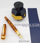 | Omas Extra, lever filler, oversize, black celluloid** 14 k gold medium tip nib, very soft and flexible |