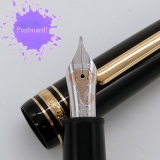 | Montblanc Meisterstück 146 black presciuos resin, TEST - OM on barrel** 18 K gold nib, OM medium oblique tip[Kein deutscher Text vorhanden] A wonderful Meisterstück 146 from the late 90ies. The pen has only rarely been inked, only minimal signs of use, no brassing, no scratches or engravings. Barrel is engraved Test - OM - this is a pen from the famous nib selector boxes. Fully serviced for a perfect writing experience. |