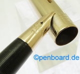 | Italian Pens, various LUS Giubileo 53 black and rolled gold with adjustable nib Steel nib, fine tipRealizzata in Italia nel 1953 per celebrare il "Giubileo" del 1953. La penna ha un sistema a scorrimento che permette di far uscire o rientrare il pennino per modificarne la flessibilità. Questa è una versione da esportazione ed ha due differenze rispetto alla versione normale il design design del meccanismo e il pennino in acciaio. |