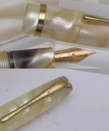 Diana two nibbed pen, pearl with black veins celluloid |