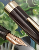 | Italian Pens, various STILUS 1007 AUTOMATICA buttonfiller, marbled brown 14K gold nib, medium tip flexible |