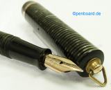 | Italiener, Varia Grey pearl Pistonfiller, probably made by ZEMAX Italy Medium tip gold nib, flexible[Kein deutscher Text vorhanden] This is a not marked pen, made from celluloid. However, style and make indicate, its Italian made. And looking at the Goldfink pen, made by ZEMAX - www.penboard.de/shop/details/04979 - you can see, that in many details, this Zemax pen is similar. A high quality pen, inspired by the vacumatic pens, but made as a postonfiller. Found in Germany and . . . |