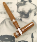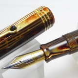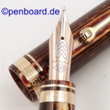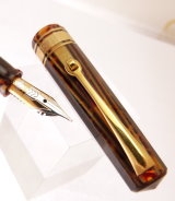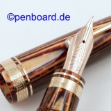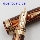| Omas ARCO Brown Celluloid Pistonfiller, Ogiva 18 K gold nib, Stub Broad tip