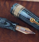 | Omas Paragon Fashion Collection 2008, pistonfiller, Hermes green HT 18K gold nib, medium tipQuesta è una edizione limitata della New Paragon, Omas ha lanciato una edizione di 8 colori di tendenza nel 2008. Sono state realizzate solo 100 penne per ogni colore. Gli 8 colori disponibili erano: Nero Tradizionale, Blu Electric, Giallo Lemon, Rosso Lacquer, Arancione, Testa di Moro, Verde Hermes e Viola Scuro. Abbiamo cambiato il serbatoio interno con uno realizzato . . . |