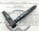 | Omas Milord pistonfiller, black resin, early version with 14K Extra Lucens nib 14 K fine tip flexible nib, Extra Lucens nib [Nessun testo in lingua Italiana disponibile] Wonderfully kept classic OMAS pistonfiller, with almost no signs of use, like new. this is an early version of the resin pen, when they still used the Extra Lucens nibs for the facetted models of the new range. |