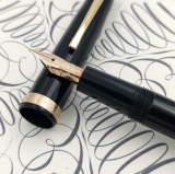 | Omas Italy - Milord pistonfiller, black resin, 18 K medium tip nib 18 K fine tip, moderately flex |