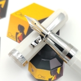 | Omas Ogiva Alba in Green transparent resin and white trims. OMAS nib 14 K, twotone, fine tip Ogiva Alba ben tenuta in resina trasparente verde brillante con rifiniture bianche. |