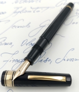 Italy - Milord pistonfiller, black resin, 18 K medium tip nib |