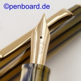 Iride vaccumfiller, brown marble and transparent celluloid, with Tibaldi nib, size M |