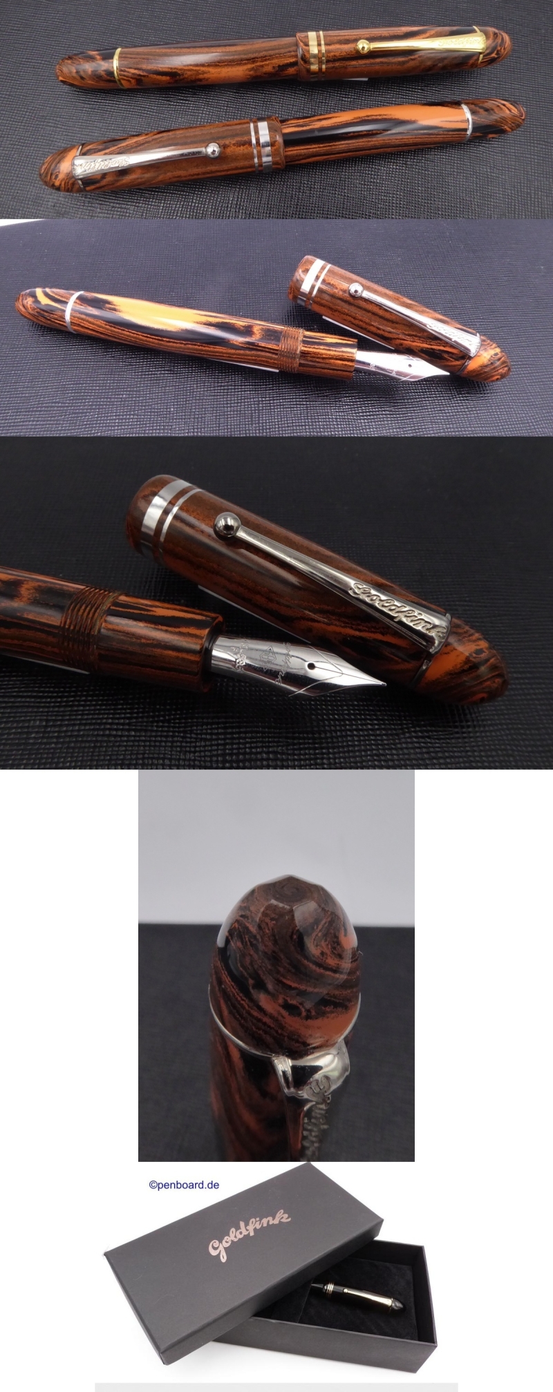 Description This new Goldfink model was made in collaboration with Leonardo pens based on a Goldfink design from the 1950ies in Berlin.