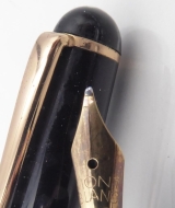 | Montblanc Meisterstück no 144 black celluloid** 14 K twotone, medium tipTurning knob is imprinted 144 and EF - but nib size is medium |