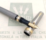 | Omas Mille Miglia pistonfiller, mat finish rhodium plate, 18 K fine tip nibMade in 1995 for the Bresica based pen shop Lazzaroni. |
