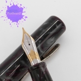 Nib is the original 2 size nib with an Fine tip. Crisp imprint on the cap. This design of pen was made in 2 versions, either as pushbuttonfiller or as pistonfiller. Pen is fully working with a new . . . |