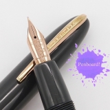 18K gold nib, Medium tip, ebonite feeder. |