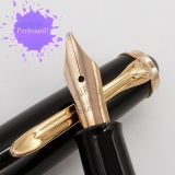| Montblanc 142 Meisterstück, black celluloid, 1956, pistonfiller ** 14 c twotone gold nib, Broad tip, flexible |